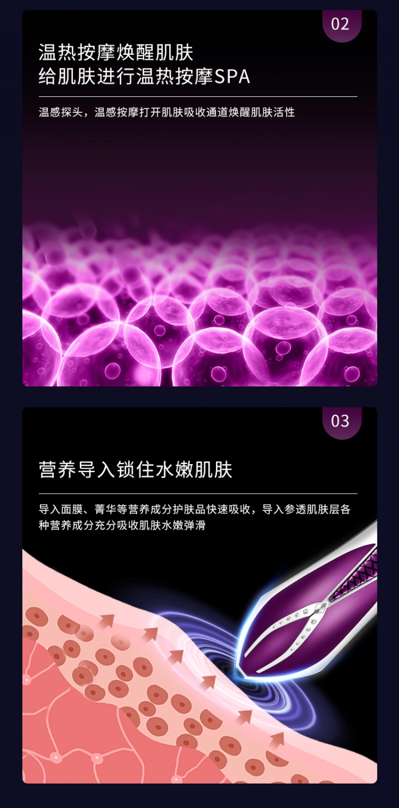 2. Warm probe, warm massage opens the skin absorption channel and rejuvenates the skin.