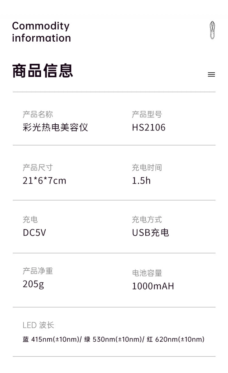 Function: skin rejuvenation, ultrasonic wave, color light