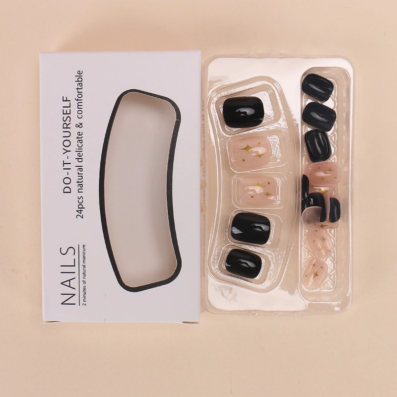 Black simple star wearing nails