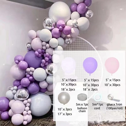 Internet celebrity pink purple gray birthday latex balloon chain set