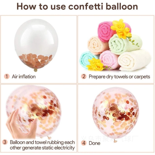 10 12-inch rose gold sequin balloons, 60 10-inch rose gold latex balloons, 60 10-inch white latex balloons, 1 glue dot, 1 glue chain