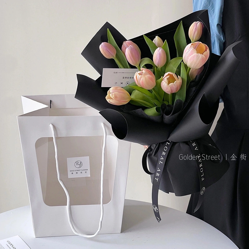 Festival flower handbag half-open window display bag visible bouquet packaging bag