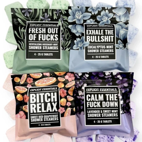 Swear Shower Steamers Gift Set, a four-piece bath and shower set