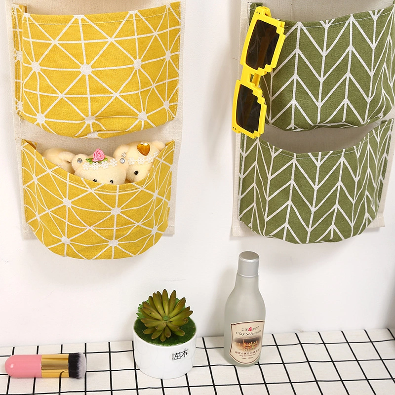 Creative cotton and linen waterproof storage hanging bag hanging three-layer hanging pocket fabric door rear sundries storage bag storage bag