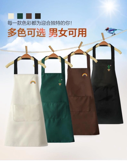 Cute cartoon korean rainbow cactus cartoon apron home men's and women's kitchen spot waterproof and oil-proof apron