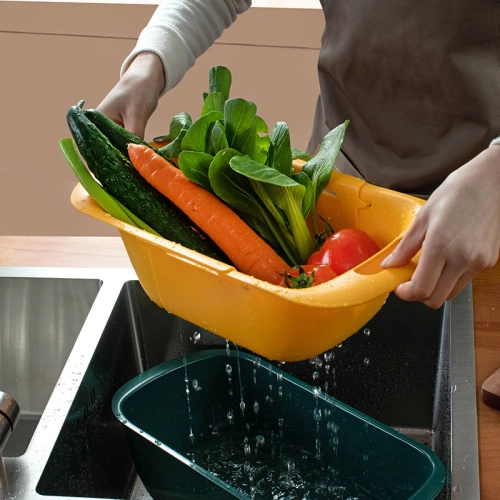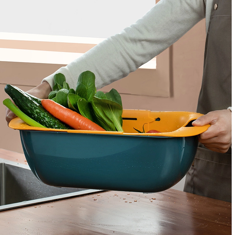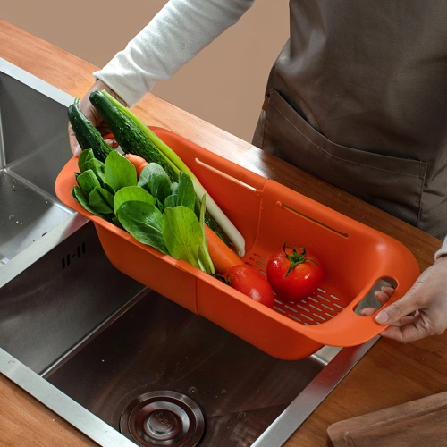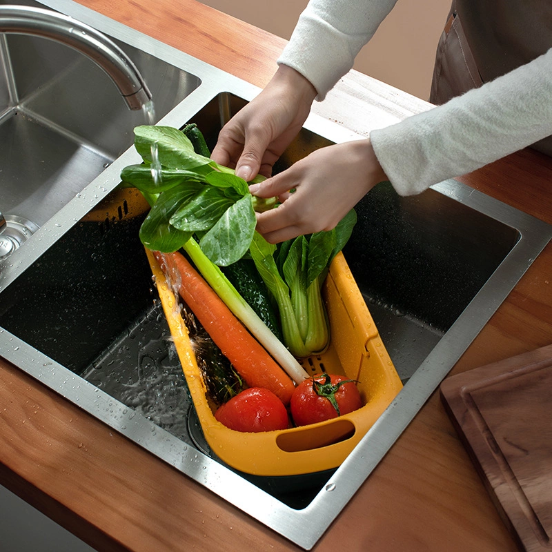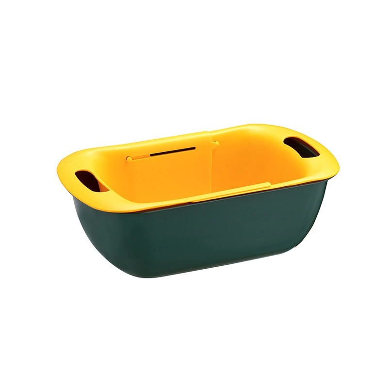 094 double-layer telescopic kitchen drain rack, fruit drain Lou thawed meat and seafood storage basin, ingots drain basket