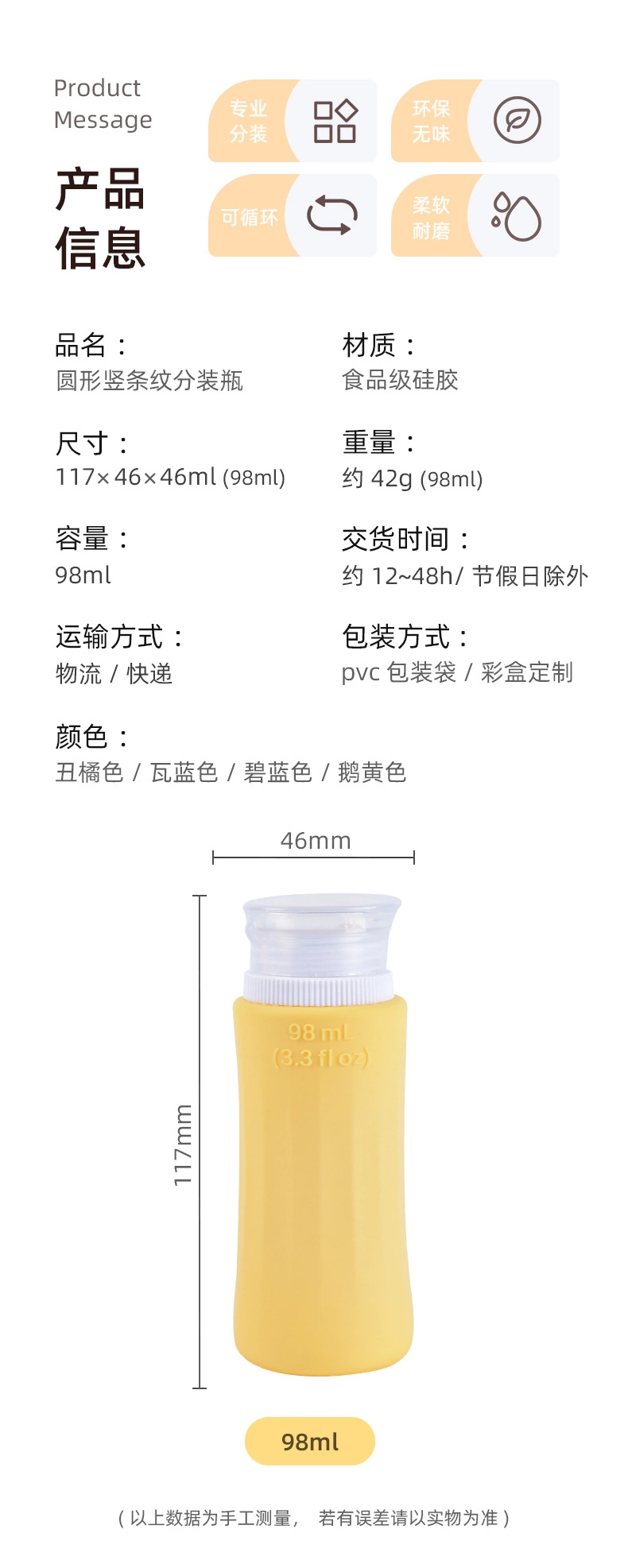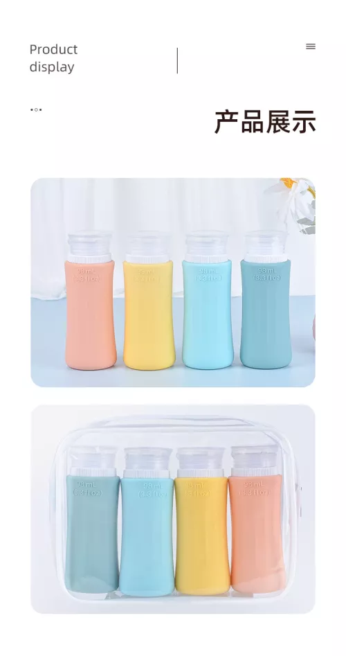 Food grade silicone bottle 3 oz portable travel bottle leakproof refillable shampoo water bottle