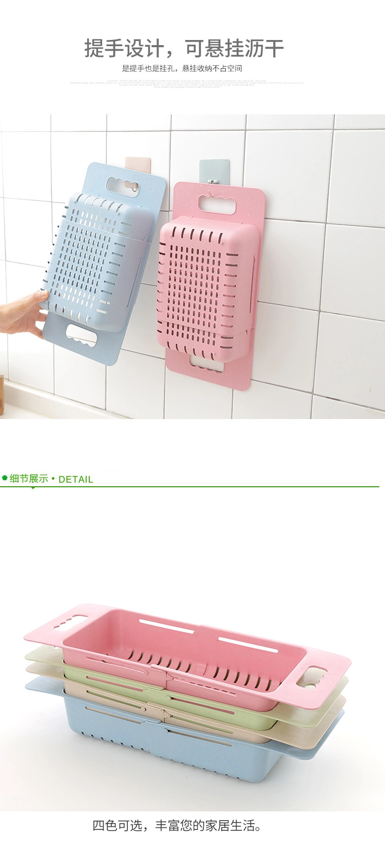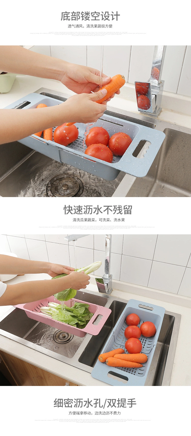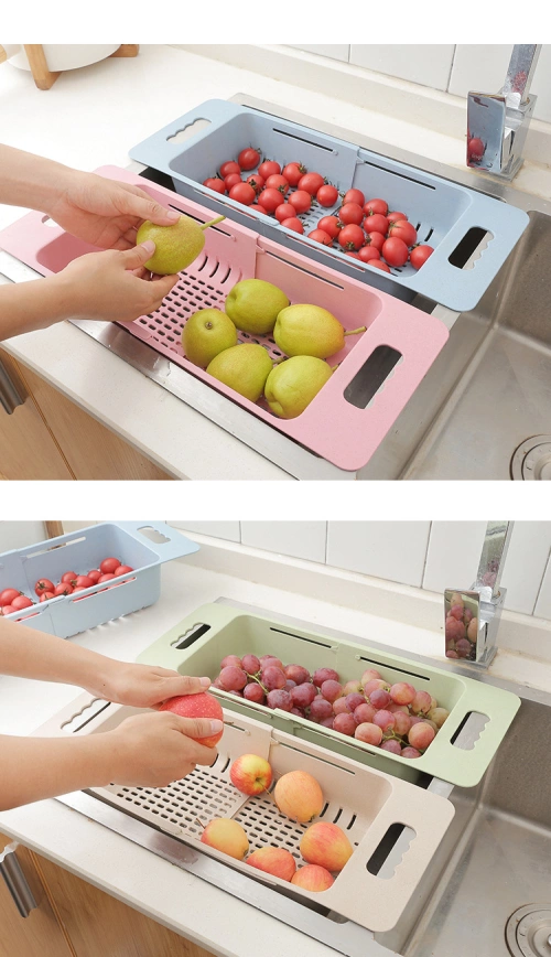 Home kitchen washing fruits and vegetables retractable drain basket for placing dishes and chopsticks adjustable telescopic rack storage rack washing vegetable basket