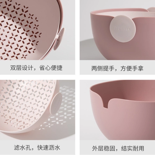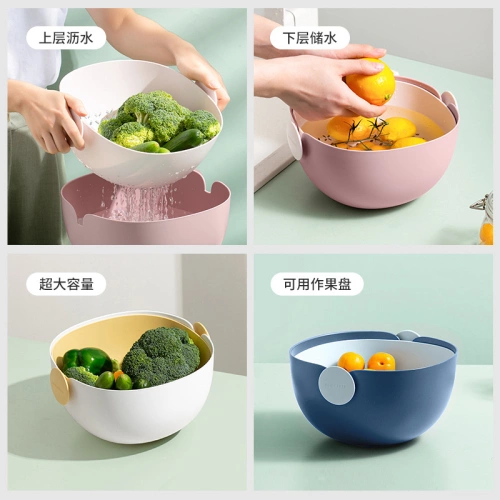 Self-designed large-capacity drain basket with double contrasting color grid design for kitchen washing vegetables and fruits washing vegetables and fruit plate