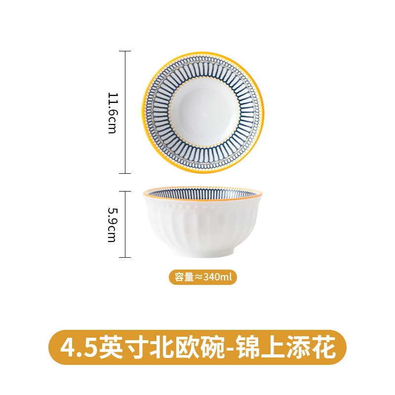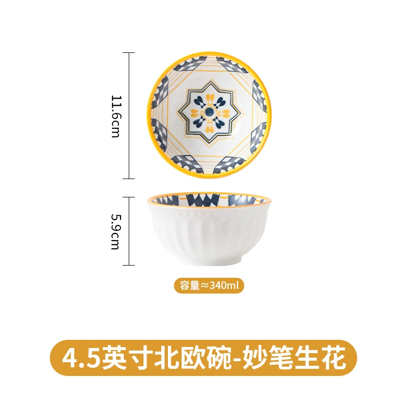 Creative underglaze color porcelain bowl household small soup bowl breakfast bowl.