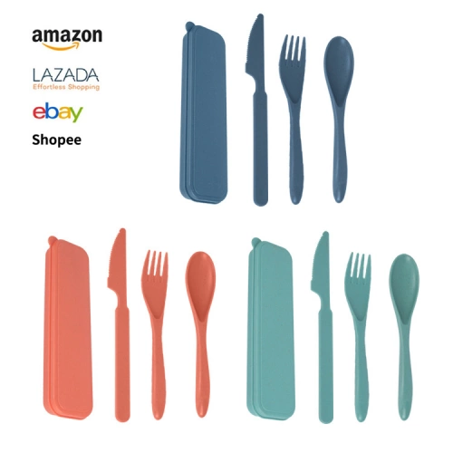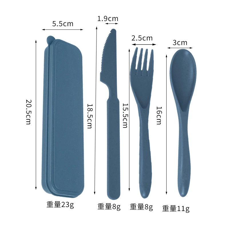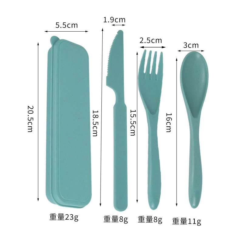 Factory wholesale wheat straw portable cutlery set knives, forks and spoons, student travel camping, cross-border cutlery three-piece set
