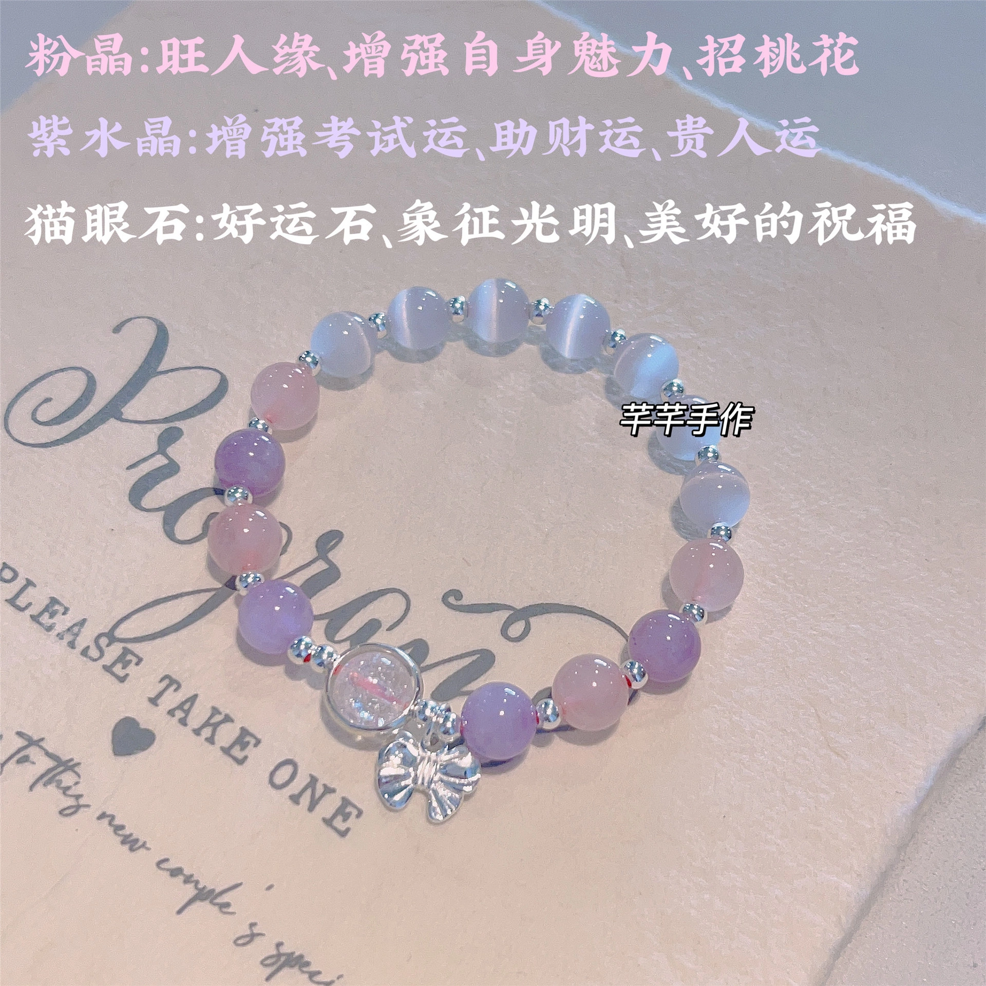 Amethyst Cat's Eye Bow Bracelet