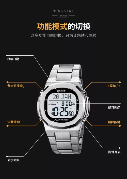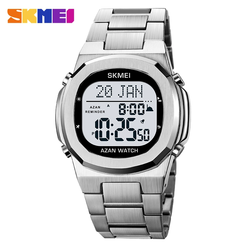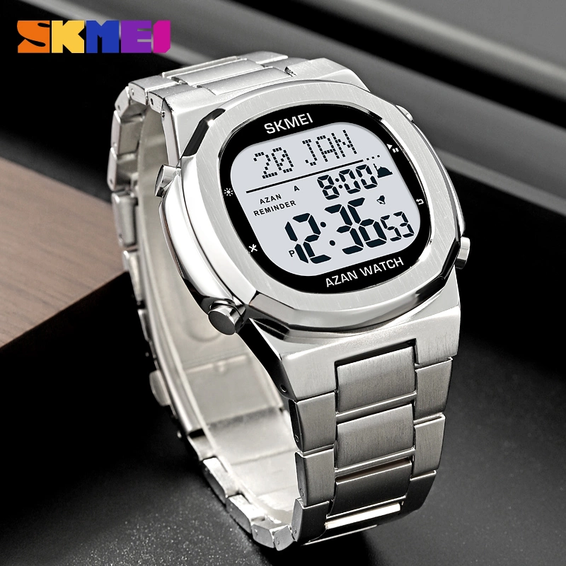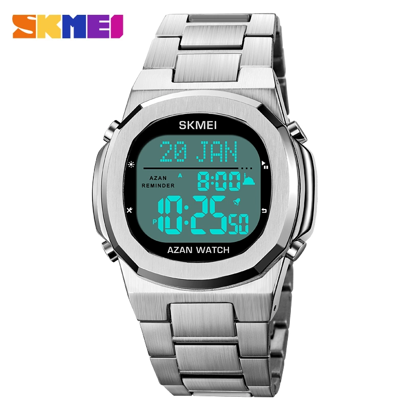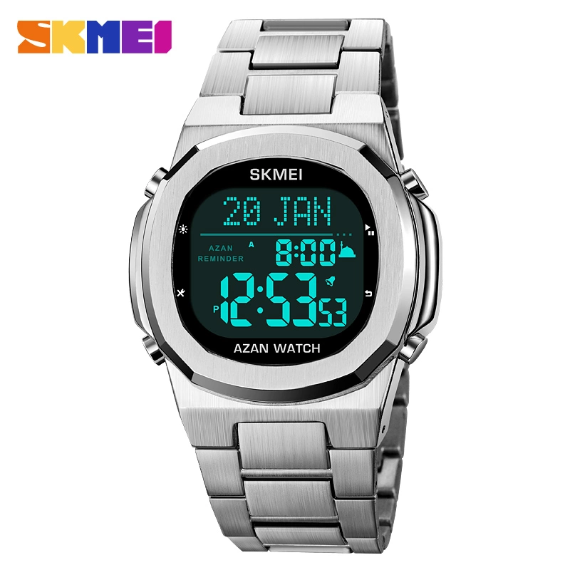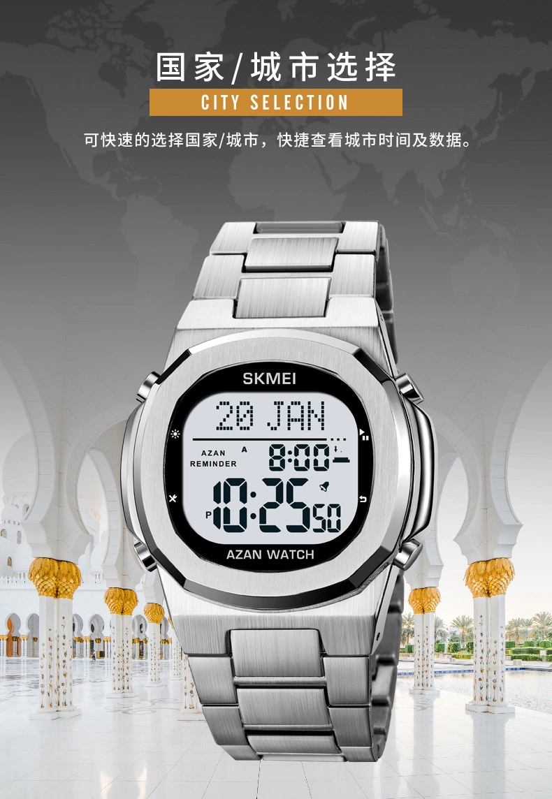 Middle East Hot Sale Multi-function Prayer Direction Arab Pilgrimage Steel Band Electronic Watch 1667