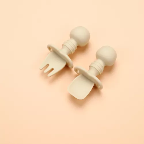 Baby learning to eat training spoon and fork