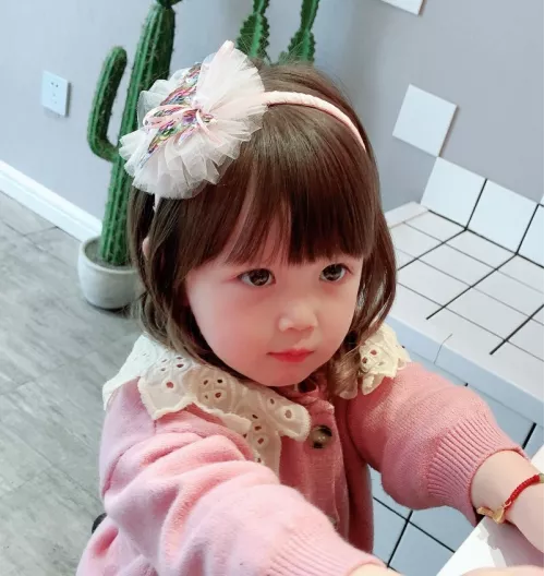 Cute and gentle care of the baby's headdress in the baby's world, full of endless childlike interest and happiness.