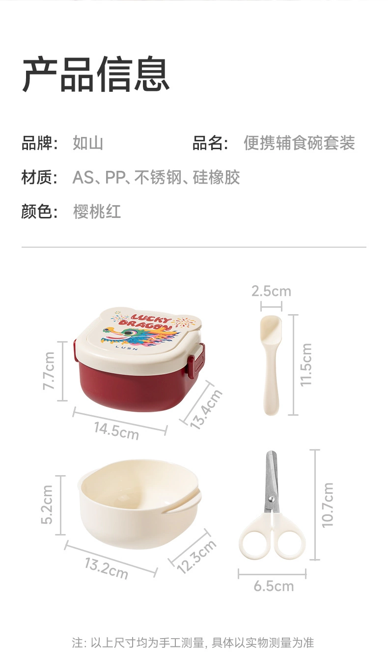 Dust cover, food supplement spoon, food supplement scissors, lid, inner bowl, outer bowl