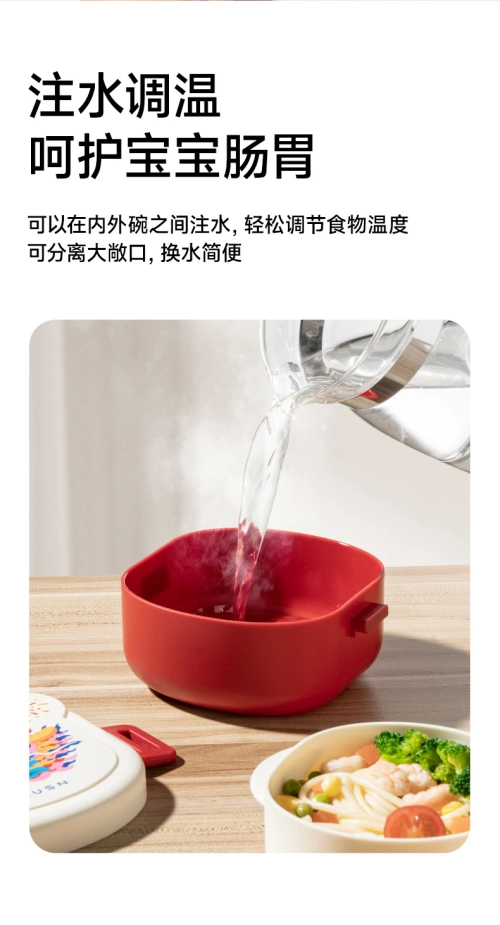 It can be filled with water between the inner and outer bowls, and the food temperature can be easily adjusted. The large opening can be separated, and the water change is simple