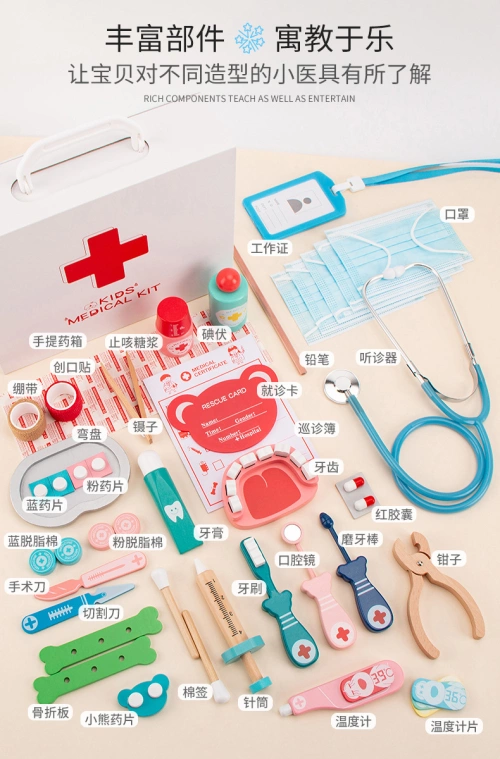 Enriching the parts, teaching and having fun, let the baby know something about small medical tools of different shapes.