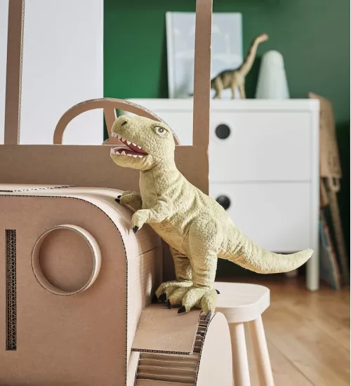 The carnivorous Tyrannosaurus Rex weighed 9 tonnes and was the king of reptiles, with a mouth so big you could hide in the opening-and teeth as big as bananas! Wondering how big its toothbrush was?This dinosaur is also available in a larger size. It can feel safe to hold hands with someone bigger when you¡¯re little.