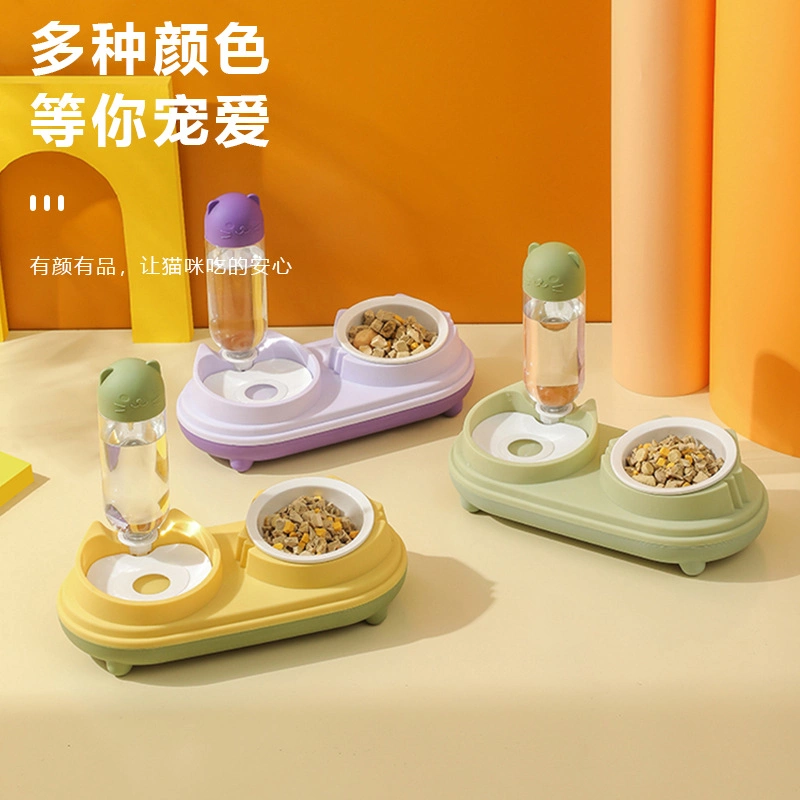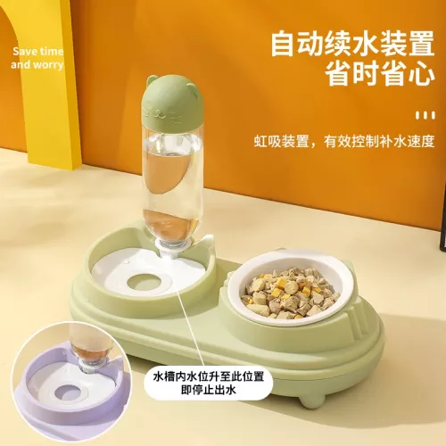 Cat bowl ceramic double bowl automatic drinking water feeder - Plastic