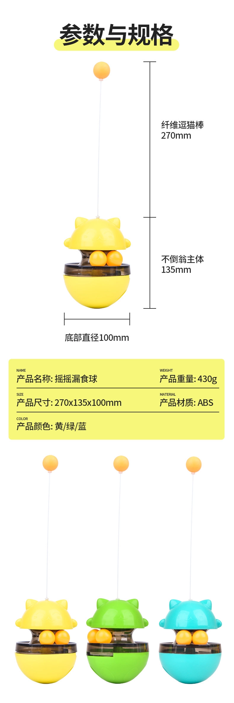 Cat toys, cat teasers, tumbler, food leaking ball set, self-entertainment tool, bite-resistant pet supplies, cat toys
