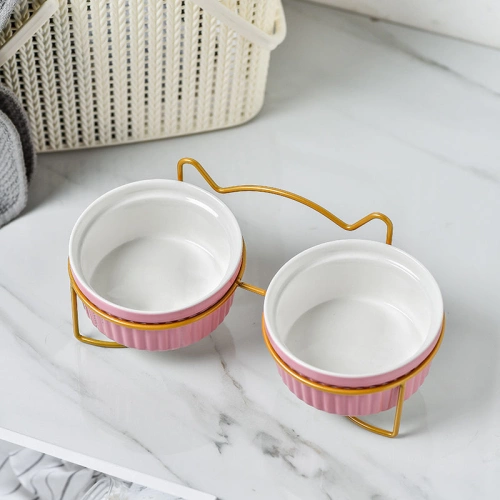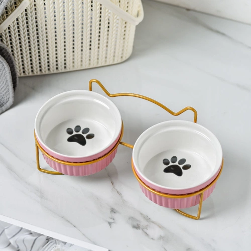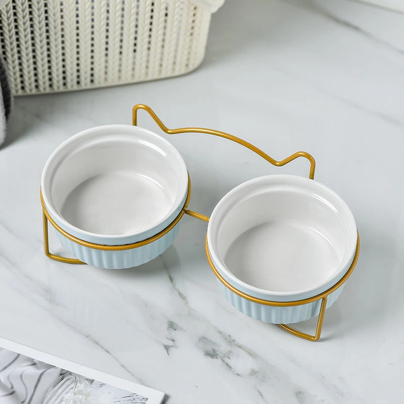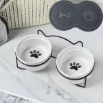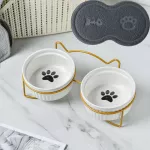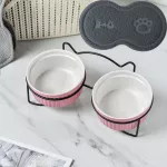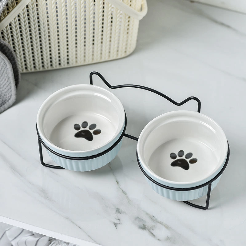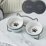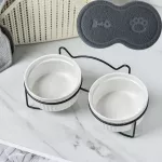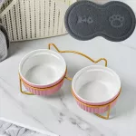 Ceramic Double Bowl Neck Guard Dog Cat Bowl Pet Food Bowl Dog Bowl Cat Food Bowl - Double Bowl with mat