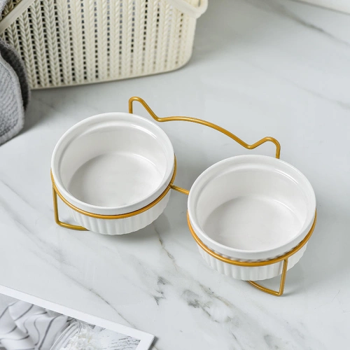 Cat bowl ceramic double bowl automatic drinking water feeder - Ceramic