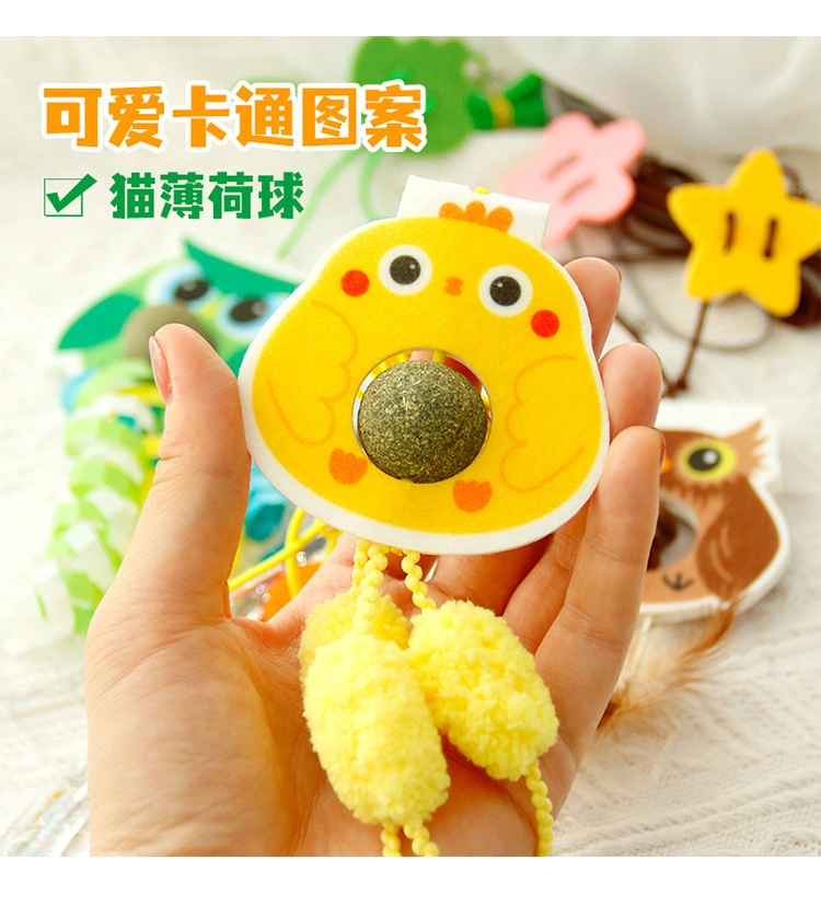Cartoon cat snacks rotating catnip balls for adult cats and kittens to clean teeth and hair balls cat grass balls (2 piece)