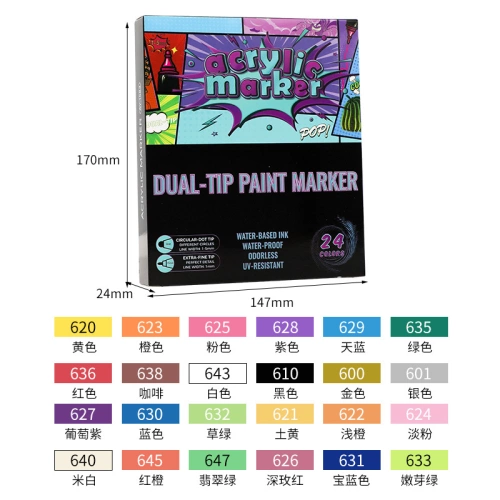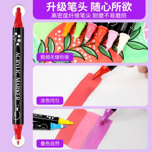 **Newly upgraded, with strong coverage, dual headed acrylic marker, safe and environmentally friendly ink, no need to shake or press, and can be easily drawn by pulling off the cap.